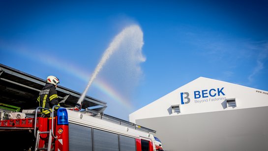 Im Anschluss an die Übung erfolgte für eine Begehung des Objektes. In der Folge fand im Feuerwehrhaus eine Übungsbesprechung statt. HBI Bernhard Buchecker begrüßte dazu, neben allen Einsatzkräften, insbesondere den Brandschutzbeauftragten der Firma Beck E-HBM Walter Haider und OAW Gerald Badegruber. Bei der Besprechung konnte übereinstimmend festgestellt werden, dass die Übungsanforderungen äußerst erfolgreich erfüllt werden konnten.