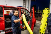 An insgesamt 8 Stationen wurden unter prüfungsnahen Bedingungen verschiedenste Szenarien trainiert: Von der fachgerechten Helmabnahme über Personenrettungen mittels Spineboard, Korbschleiftrage, Tragetuch oder Schaufeltrage bis hin zur korrekten Versorgung mit dem Sam-Splint. Dabei standen nicht nur die richtige Technik, sondern auch das strukturierte und rasche Handeln des Trupps im Vordergrund.