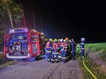 Parallel dazu wurde intensiv an der Löschwasserversorgung gearbeitet. Aufgrund der größeren Entfernung zum Löschwasser musste hier eine Relaisleitung aufgebaut werden. Sobald diese hergestellt war, konnte auch ein Außenangriff gestartet und ein Übertritt der Flammen auf das angrenzende Gebäude verhindert werden. Kurz danach wurde „Brand aus“ durch die Übungsleitung gegeben und die Übung war erfolgreich beendet.