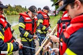 Bereits um 8:00 Uhr trafen sich die eingesetzten Besatzungen am Ufer. In einem ersten Ausbildungsteil standen wesentliche Grundlagen der Wasserwehr auf dem Programm: