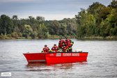 Im Anschluss wurde mit den A-Booten eine kleine Ölsperre aufgebaut: Zwei Glieder, Boje und Fächer wurden gesetzt, der Sperrwinkel angepasst und die Strömungseinflüsse berücksichtigt. Die Teilnehmer konnten dabei die korrekte Handhabung der Ölsperre praxisnah erlernen. Auf der Rückfahrt zur Anlegestelle wurde schließlich noch das Schleppen anderer Wasserfahrzeuge beübt – eine Aufgabe, die Kraft, Technik und gutes Teamwork erfordert.