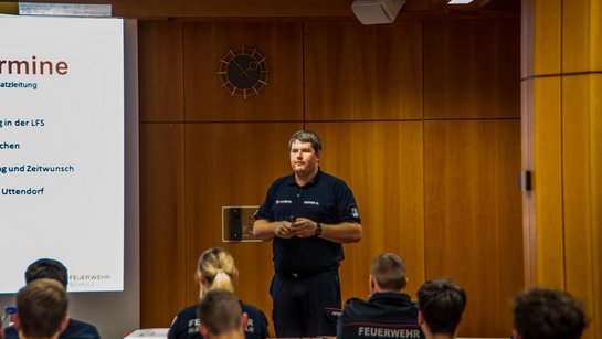 Bei der Schlußveranstaltung gratulierte der Bezirksfeuerwehrkommandant LFR Josef Kaiser den Teilnehmern zum bestandenen Lehrgang.