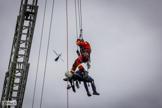 Ein besonderer Schwerpunkt lag auf den Live-Vorführungen, die um 11.00 Uhr, 12.30 Uhr und 14.00 Uhr stattfanden. Dabei wurde deutlich, wie breit das Einsatzspektrum der beteiligten Organisationen ist – von Brandbekämpfung und technischer Hilfeleistung über Höhenrettung und Katastrophenschutz bis hin zu sanitätsdienstlicher Versorgung und militärischer Unterstützung in besonderen Lagen.