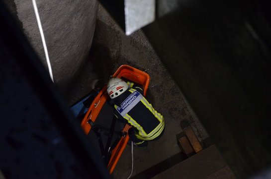 Nachdem die verletzte Person im Oberwasserbereich des Kraftwerks dem Rettungsdienst übergeben werden konnte, musste sämtliches Material welches Anfangs nach unten transportiert wurde von den Einsatzkräften wieder nach oben verbracht werden.