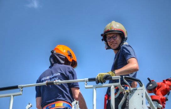 Beübt wurde der Aufbau einer Saugleitung aus fließendem Gewässer, die folgende Wasserabgabe über C- und B-Strahlrohre, die Speisung des eines Tankwagens und die Verwendung der Drehleiter mit Wasserwerfer.
