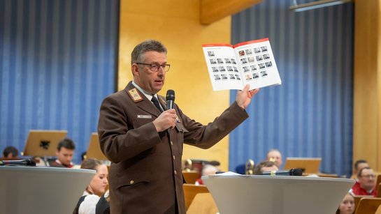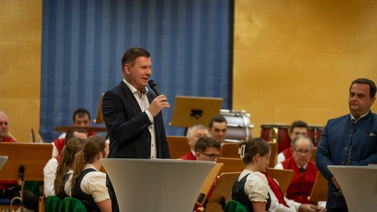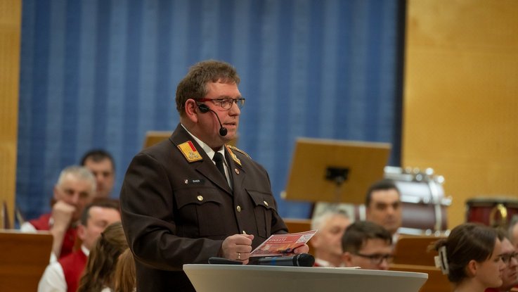 Bezirksfeuerwehrkurat Mag. Markus Klepsa fĂŒhrte dabei Ă€uĂerst kurzweilig und mit viel GespĂŒr fĂŒr Stimmung und Inhalt durch das Programm.