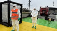 - Dekontamination der Einsatzkräfte: der Einsatz von Trupps mit Gefahrstoffschutzbekleidung erfordert umfassende Dekontaminationsmaßnahmen, welche hier praktisch durchgeführt wurde.