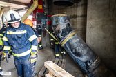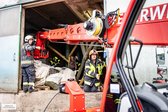 Mittels Teleskoplader konnten zudem schwere Metallteile der Anlage entfernt und aus dem Objekt gebracht werden, um eine bessere Zugänglichkeit zur Brandstelle zu ermöglichen.
