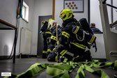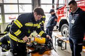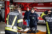 An der zweiten Station zeigen die Geräteträger, dass sie ihre persönliche Schutzausrüstung und den Pressluftatmer sicher und normgerecht aufnehmen können. Vom korrekt eingestellten Gerät über die Einsatzkurzprüfung bis hin zum richtigen Anlegen von Maske, Flammschutzhaube, Helm und Handschuhen ist jeder Handgriff klar vorgegeben. Für diesen Ablauf steht nur ein enges Zeitfenster zur Verfügung – zu langsam ist ebenso wenig erlaubt wie zu schnell, weil Hektik erfahrungsgemäß zu Fehlern führt.