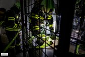 Anschließend geht es in eine realitätsnahe Übungsstrecke in einem abgedunkelten Bereich. Unter Nullsicht arbeiten die Trupps mit Wärmebildkamera, Funk, C-Hohlstrahlrohr und Rettungsleine. Türen werden korrekt geöffnet, Absperreinrichtungen für Strom und Gas erkannt und „abgestellt“, es werden Drücke gemeldet, Gefahrenkennzeichnungen erkannt und – ab Stufe Silber – auch eine Übungspuppe als „verunfallte Person“ schonend gerettet und aus dem Gefahrenbereich gebracht.