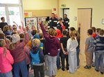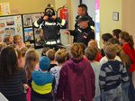 Zunächst fand eine Räumungsübung statt. Diese verlief ruhig und organisiert. Mittels einer Handglocke wurden die SchülerInnen und Lehrkräfte alarmiert und in nur wenigen Minuten war das Gebäude komplett geräumt. Im Anschluss wurde den Kindern und Lehrkräften das richtige Verhalten im Brandfall vermittelt und es gab eine Frage- und Antwortrunde. Die Präsentation eines voll ausgerüsteten Atemschutzträgers rundete die Räumungsübung ab.