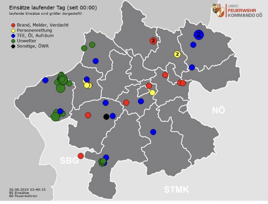Wegen eines heftigen Gewitters mit Starkregen wurden die Feuerwehren unseres Bezirks am 26.08.2019 ab ca. 22:00 zu über 30 Unwettereinsätzen gerufen. Die enormen Regenmengen überfluteten zahlreiche Keller.
