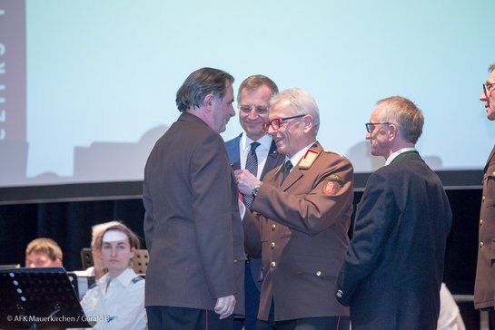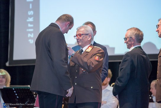 Der Dienstgrad Ehren- Abschnittsbrandinspektor wurde an den langjährigen Kommandanten der FF Mattighofe, Martin Greil verliehen.