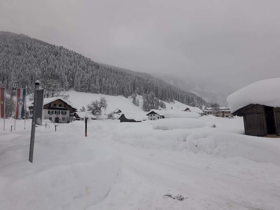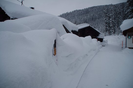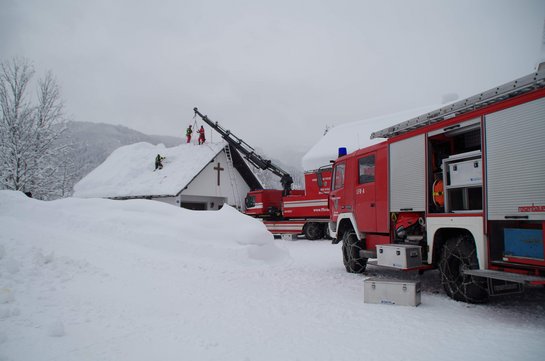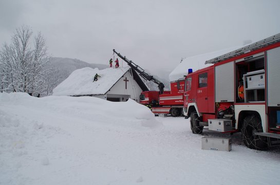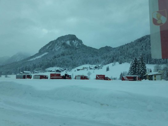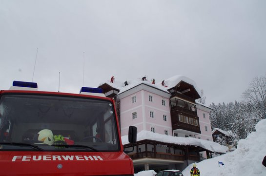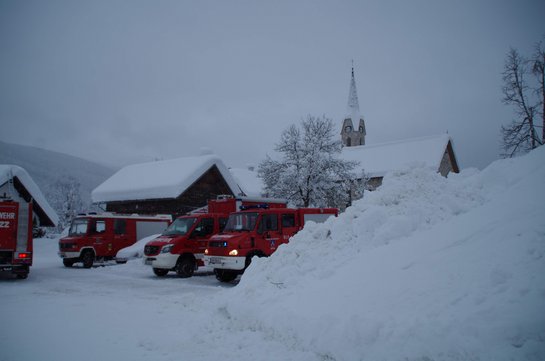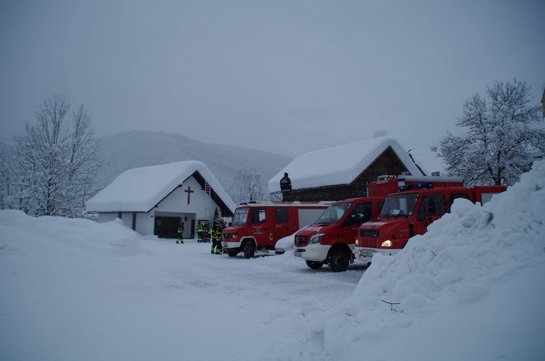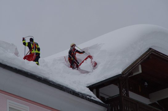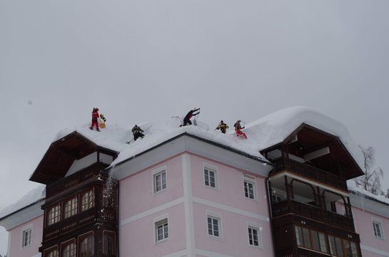 Lage in Gosau: Enorme Schneemengen auf den Dächern (ca 120-180 cm), starke Schneeverwehungen, möglicher Regen verschärft kritische Lage 15 Einfamilienhäuser, 3einige Großobjekte (Seniorenheim, Leichenhalle, Pfarrhaus, Gasthof Echo) Derzeit ca. 150 anstehende Objekte, die noch bearbeitet werden müssen.