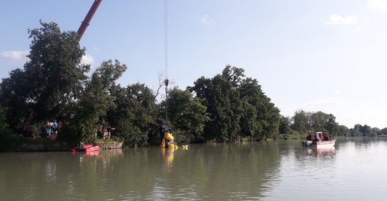 Damit das gefundene Fahrzeug gehoben werden konnte, wurde zu den bereits vorhandenen Hebeballone der Tauchgruppen Ried und Schärding ein 1000kg Hebeballon von der Tauchgruppe St. Peter am Hart nachalarmiert.