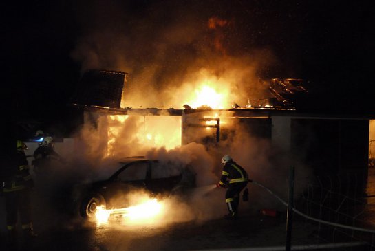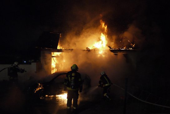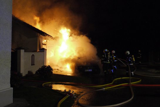 Samstag Nacht wurden die Feuerwehren Ernsting, Ostermiething und Tarsdorf zu einem ausgedehnten Garagenbrand gerufen.