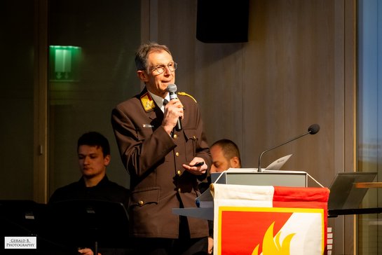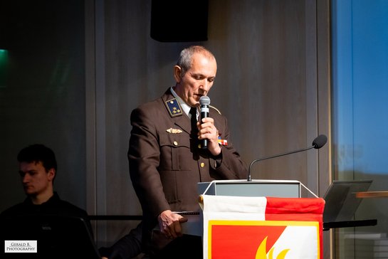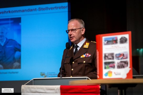 Nach der Ansprache von Bundesrat Ferdinand Tiefnig der als Vertretung für den Landeshauptmann fungierte, kamen noch die Grußworte des Landes-Feuerwehrkommandanten Stellvertreter Michael Hutterer, bevor Josef Kaiser und Albert Sperl sich bei allen Bedankten, die zum Gelingen des Projektes „Bezirksfeuerwehrchronik“ beigetragen haben.